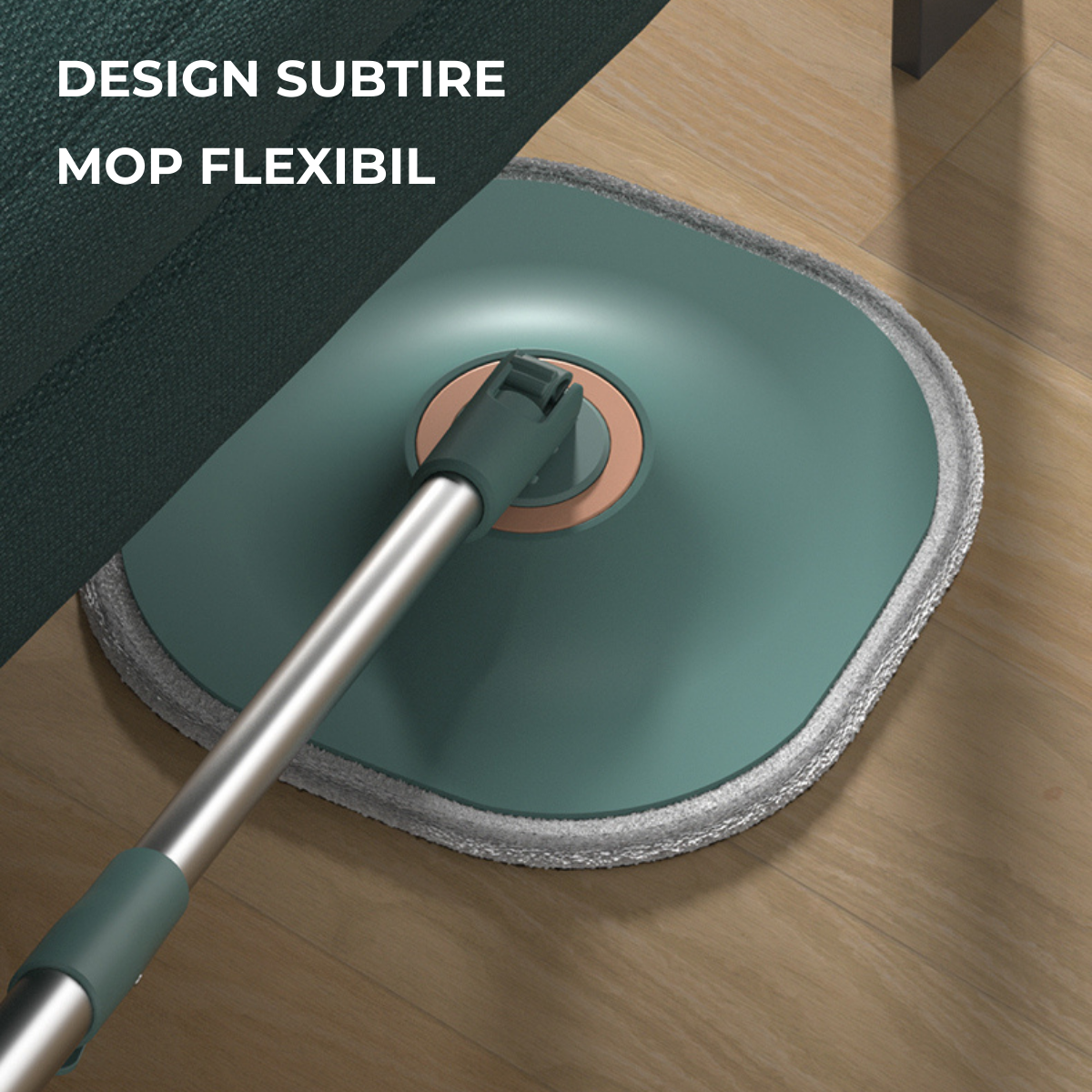 Mop rotativ pătrat cu găleată DreamRamp®, separă apa murdară de cea curată- Verde