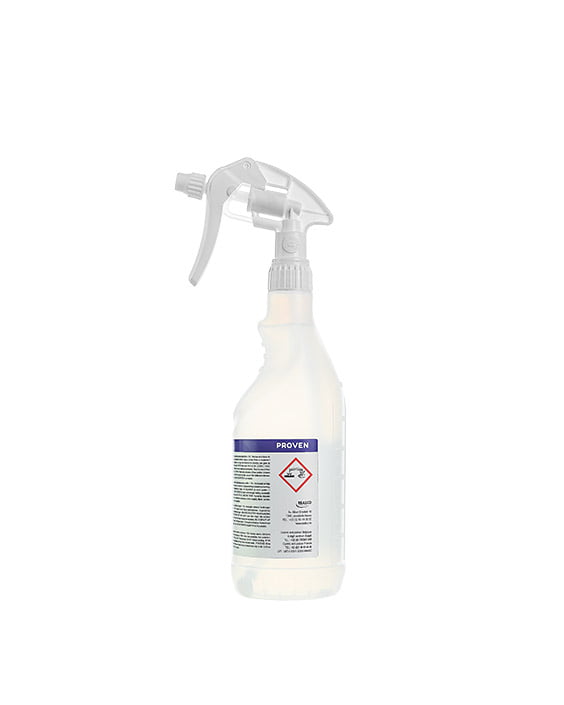 Proven este un eco-detergent alcalin puternic degresant, destinat curățării manuale la rece a cuptoarelor si grătarelor profesionale. Îndepărtează cu ușurință depozitele de grăsimi și arsură, și redă luciul natural al suprafețelor. Are o aderență sporită la suprafețe verticale datorita vâscozității sale. Se pretează suprafețelor care intră în contact cu alimente.