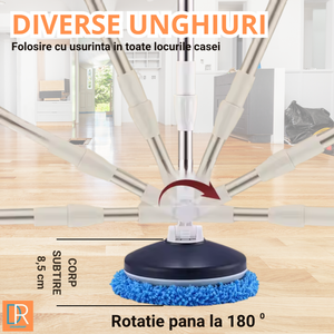 Mop EleRedefinește modul în care faci curățenie cu acest mop electric wireless – un dispozitiv modern, rotativ, versatil și puternic, gândit pentru a-ți ușura viața. Compact și portabil, cu funcție dublă pentru curățare umedă și uscată, acest mop este aliatul ideal pentru orice tip de suprafață: parchet, gresie, faianță, sticlă, lemn, pereți vopsiți sau caroseria mașinii.