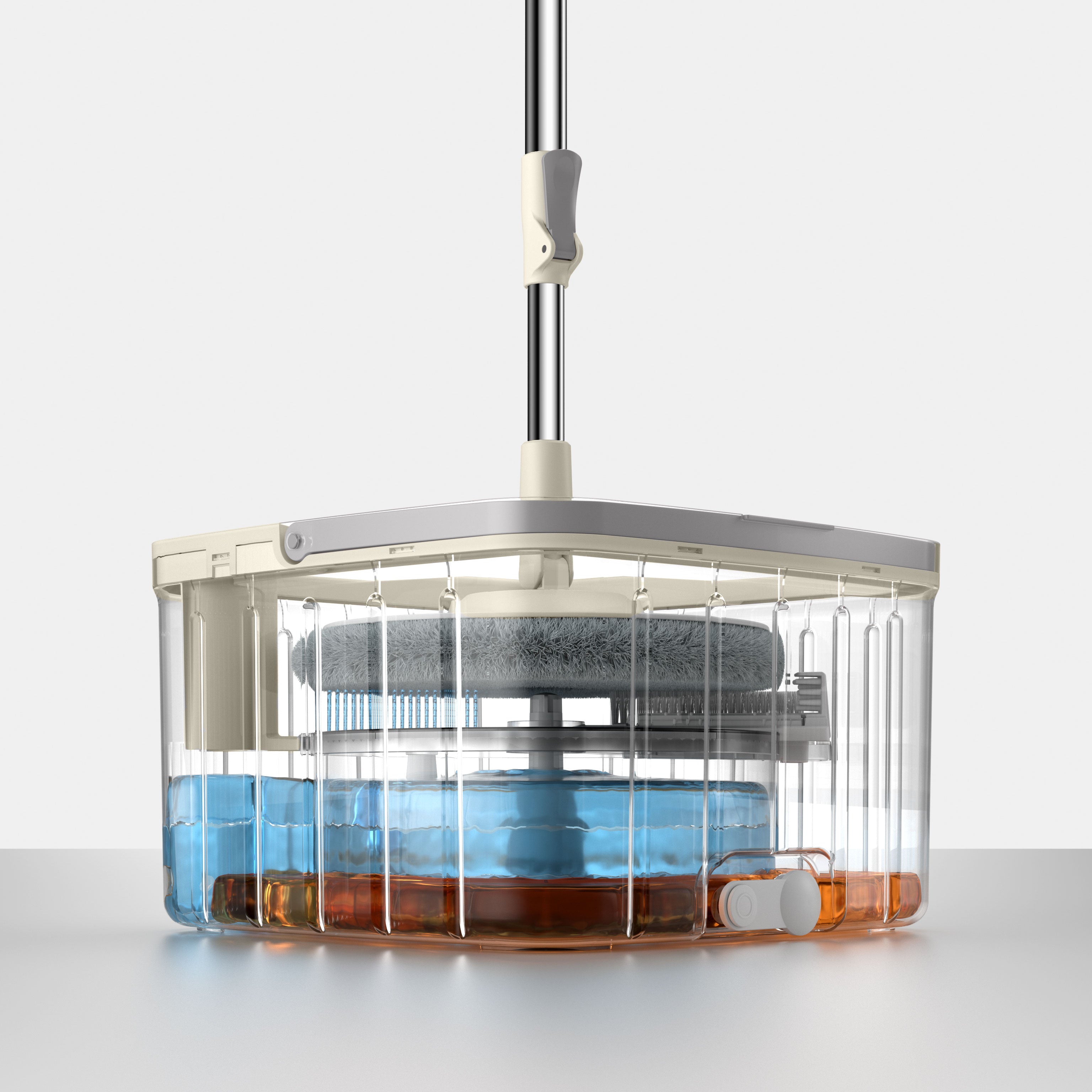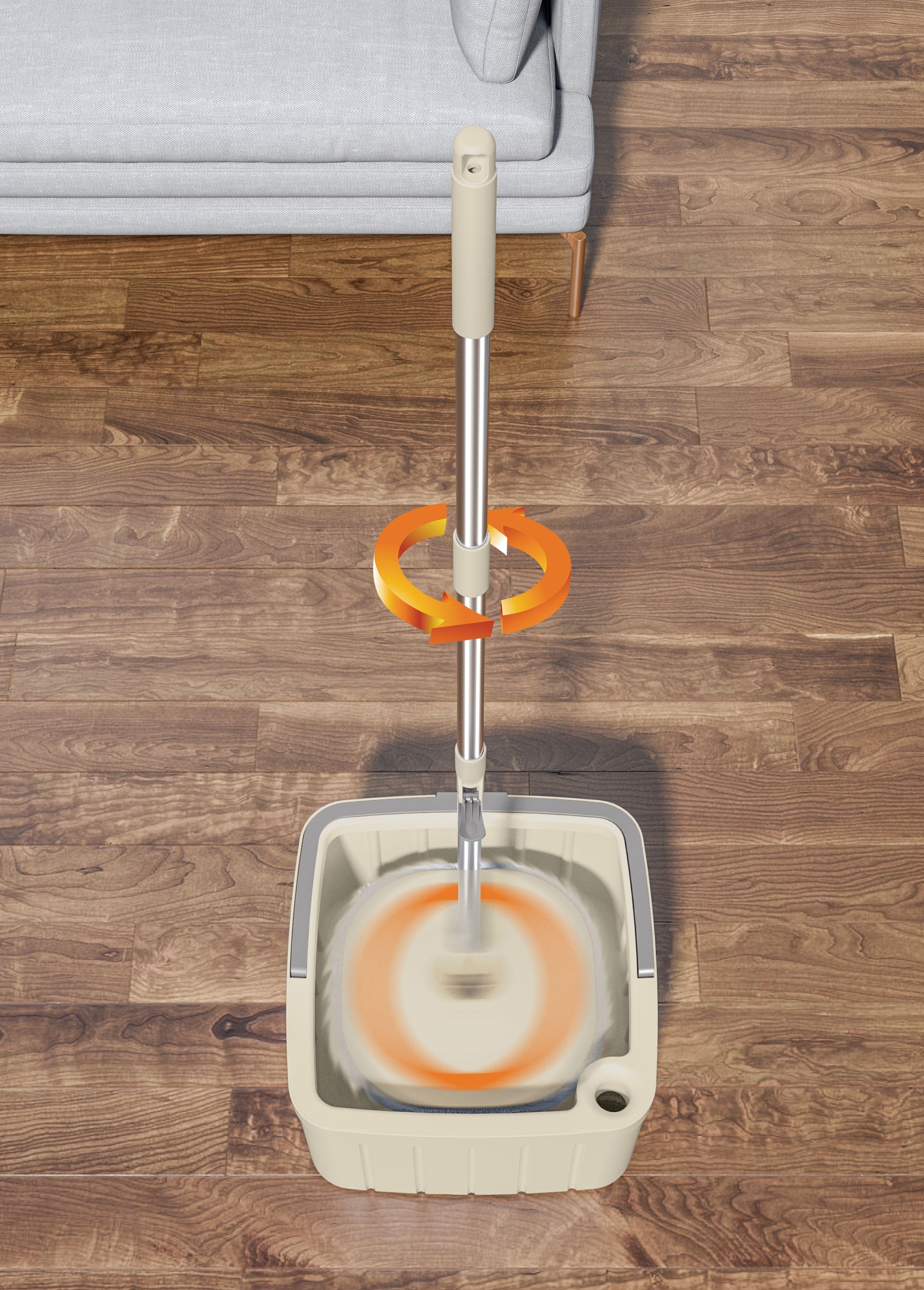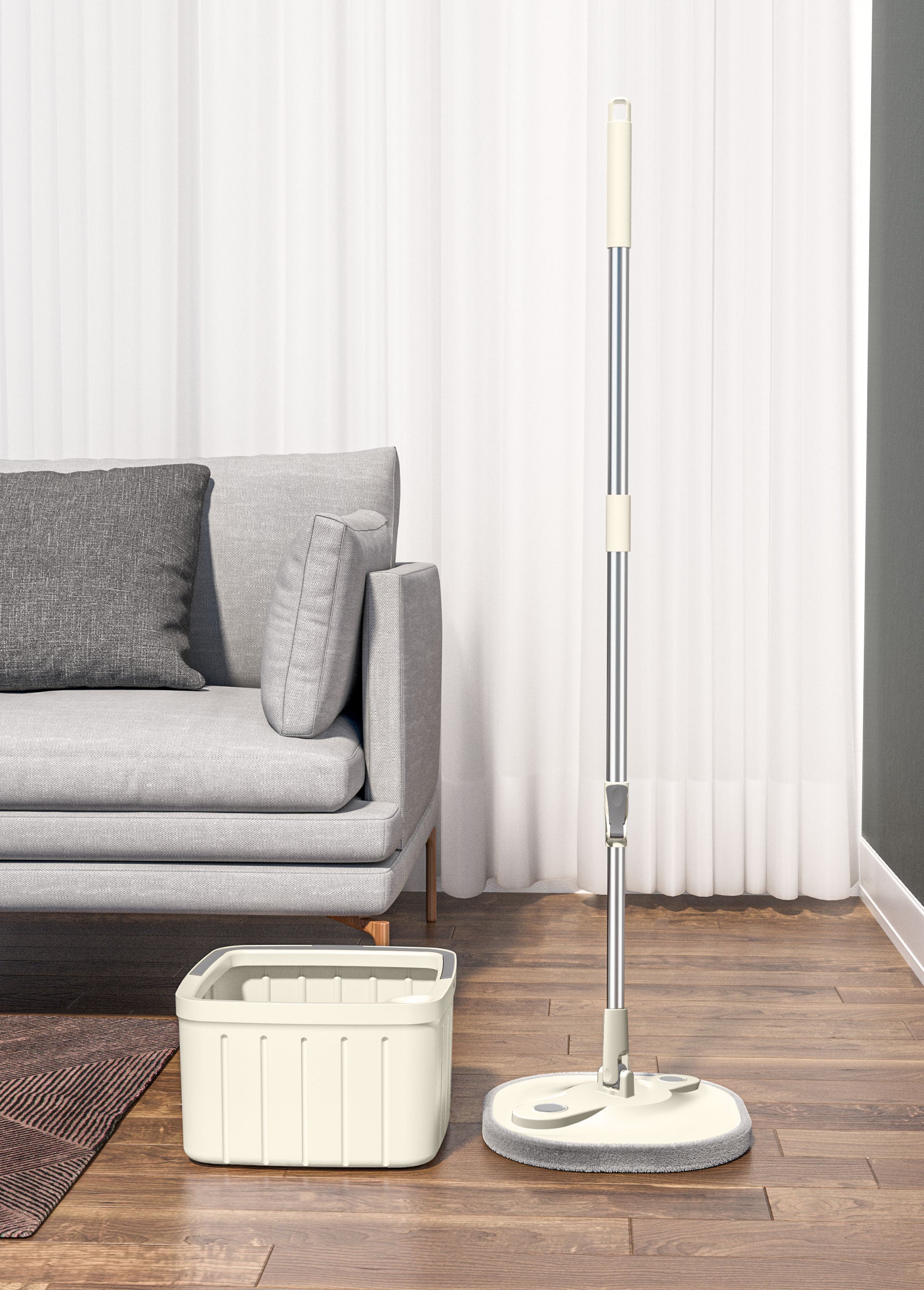 Mop Rotativ DreamRamp – Eleganță și Eficiență cu Găleată Patrată Bej!