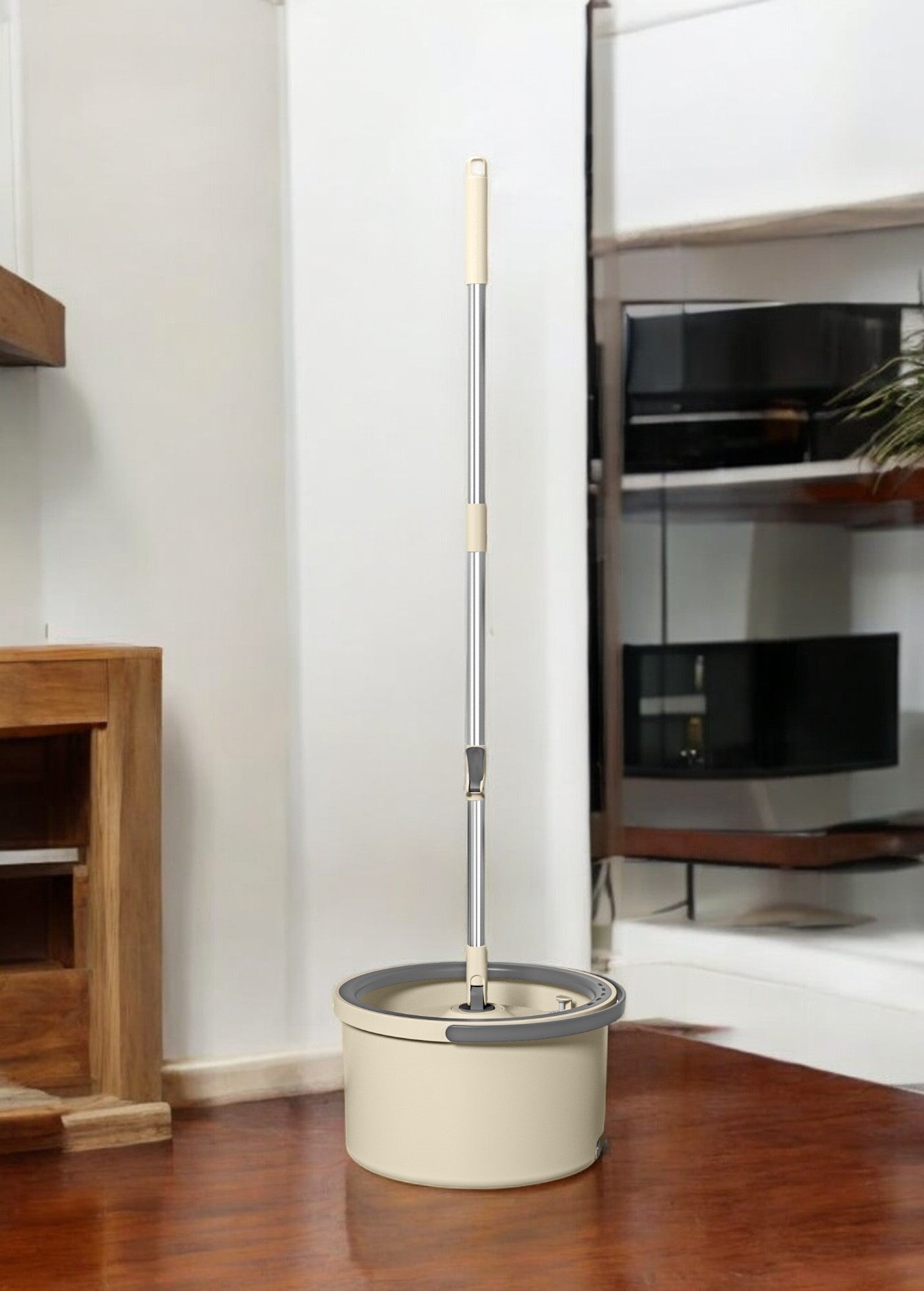 Mop Rotativ DreamRamp – Eleganță și Performanță cu Găleată Bej și Mop Rotund!