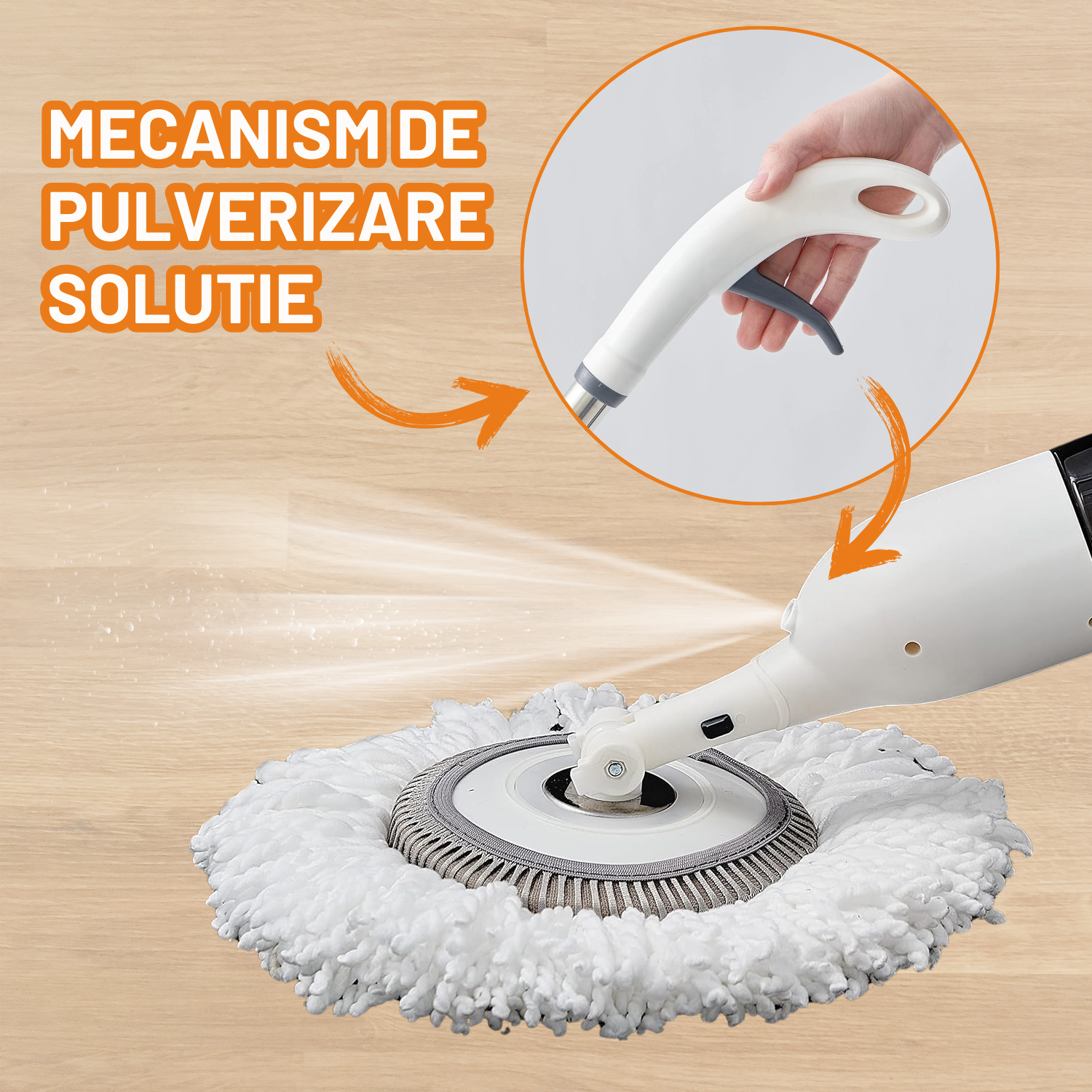 Mop cu pulverizator 3-în-1 DreamRamp® – plat, rotund și racletă