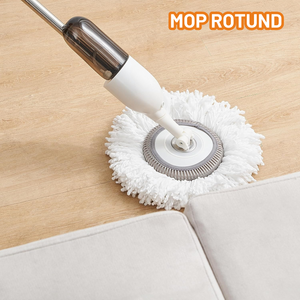 - Folosește mopul rotund pentru suprafețele delicate și mopul plat pentru colțuri.