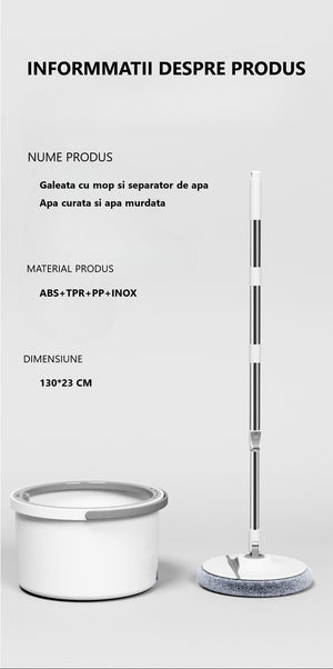 Mop rotativ cu găleată și stoarcere eficientă, pentru o curățenie mai ușoară