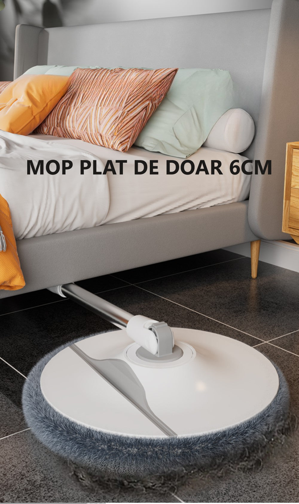 Microfibra mopului adună eficient murdăria și praful, fără să zgârie sau să deterioreze suprafețele.