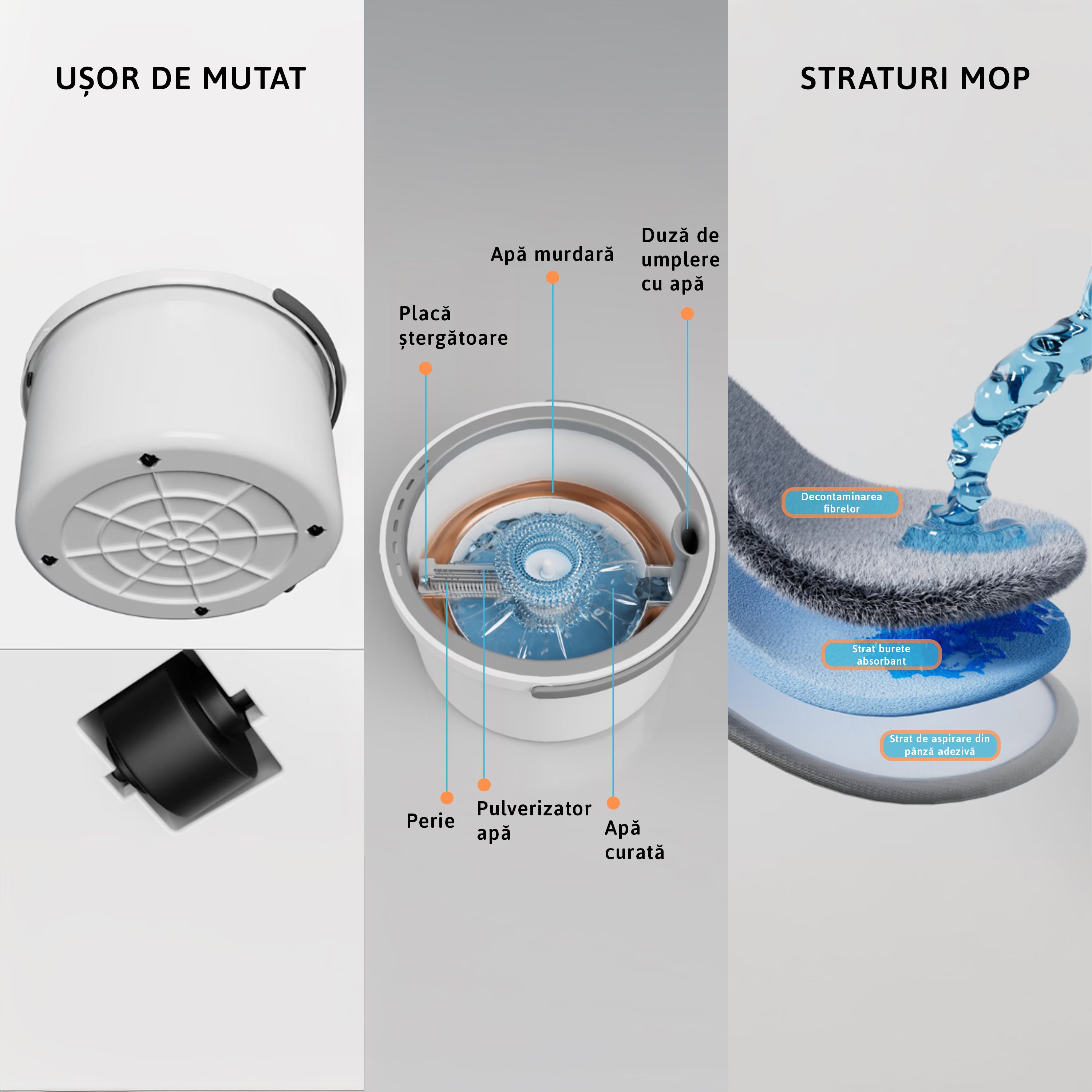 Este un mop cu separare apă gândit pentru cei care vor o curățenie corectă, nu doar rapidă.