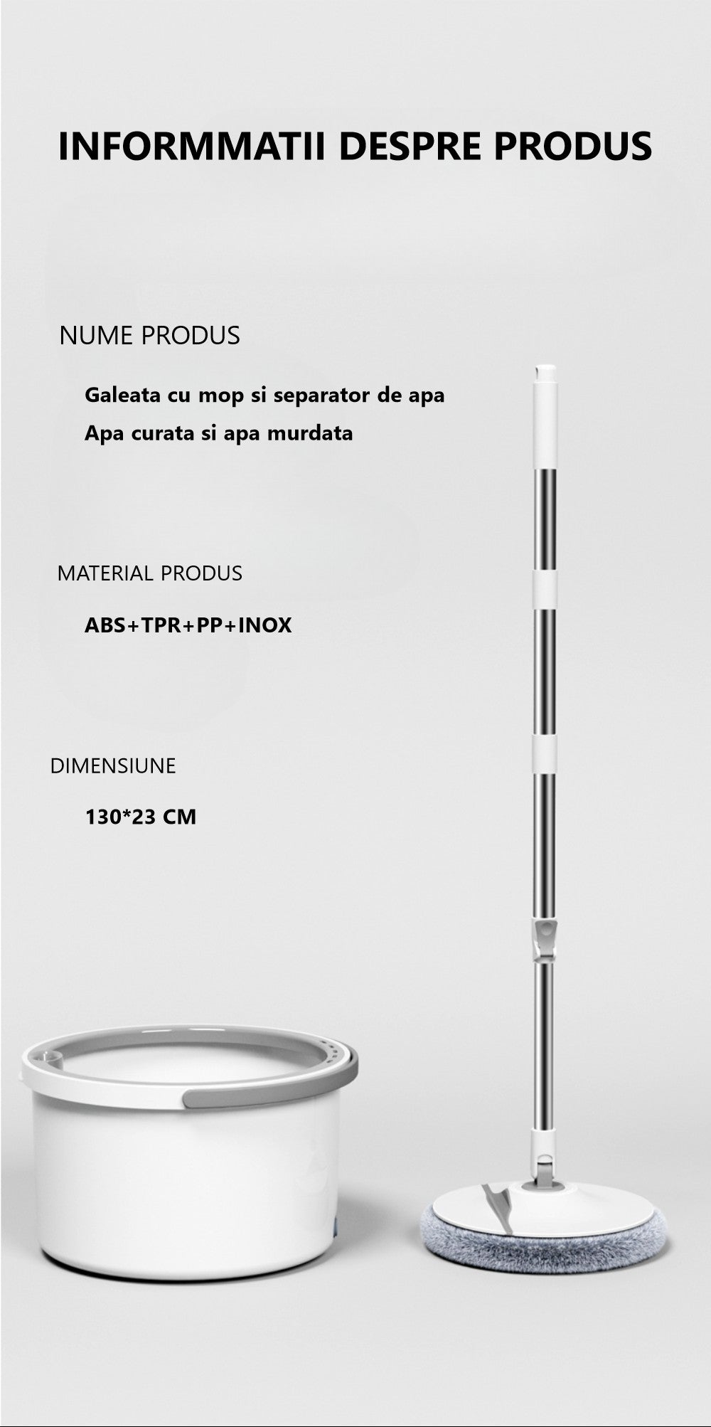 Acest mop cu găleată este potrivit atât pentru curățenia zilnică, cât și pentru suprafețe mai dificile, fiind o alegere practică pentru orice locuință.