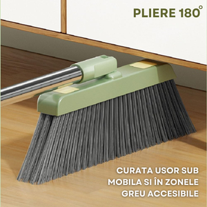 Mătură cu cap rotativ 45°, făraș și teu pentru apă, cu pieptene curățare și sistem pliabil - Verde